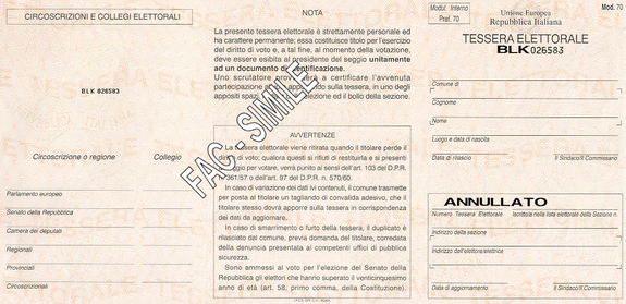 Si ricorda che per esercitare il diritto di voto, insieme alla Tessera Elettorale personale, il cittadino dovrà esibire anche un documento d’ identità o riconoscimento.