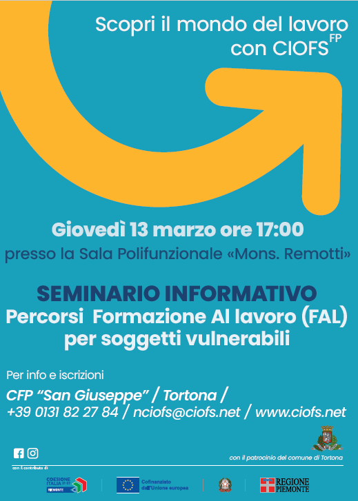 CFP “San Giuseppe” / Tortona / +39 0131 82 27 84 / nciofs@ciofs.net / www.ciofs.net